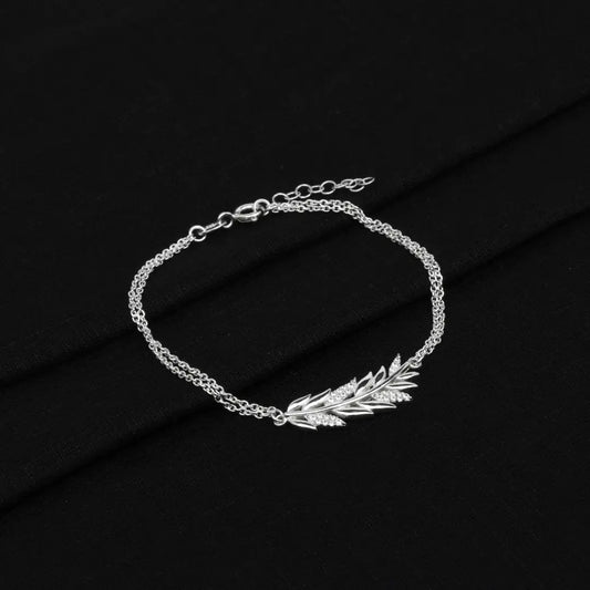Silver leaf with zircon embedded bracelet